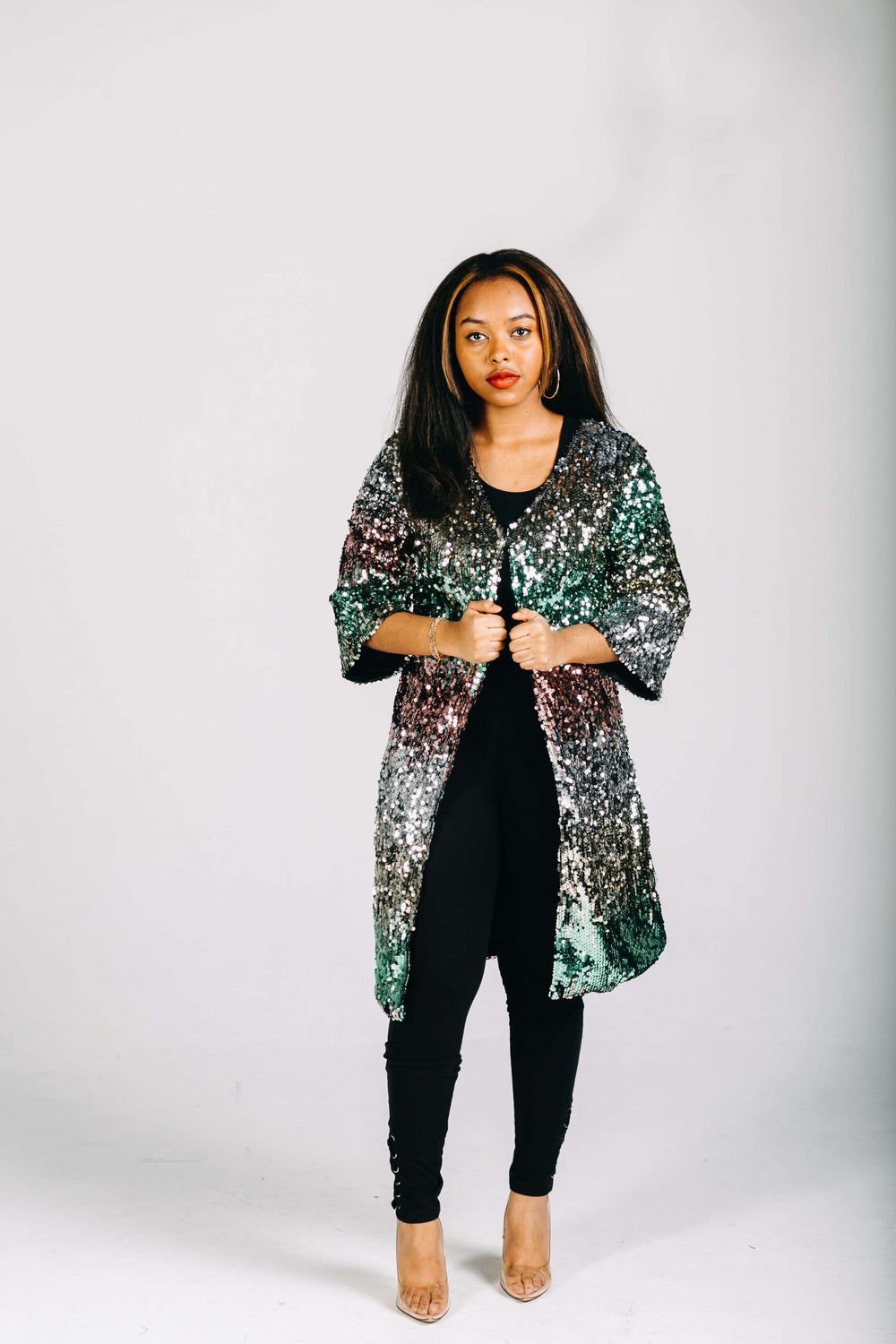 Date Night Sequin Blazer-Green/Rose Gold